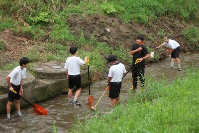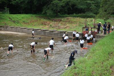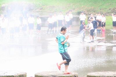 夏休み初日。8:00に集合してせせらぎプール清掃を行いました。