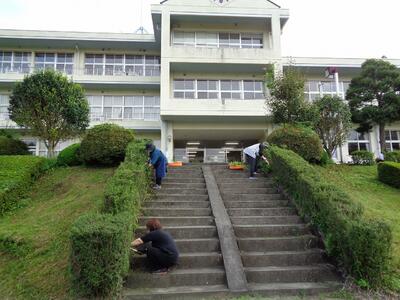 2学期を目前に控え、生徒も参加して学校の周辺をとてもきれいに整えていただきました。