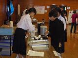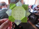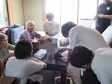 板荷地区敬老会に続き、高齢者交流会を行いました。実行委員が司会進行等を行いました。児童館、小学生の出し物に続き、「黒田節」「合唱」を披露しました。会の中で参加された方々とのふれあいの時間も設け、折鶴をプレゼントしながら参加された皆さんとのと楽しい会話もできました。お茶やコーヒーを配る裏方の活動もしっかり行うことができました。