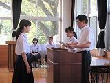 8時から8時15分にかけて、地区新人大会とよい歯のコンクール(標語)の表彰、新生徒会役員の任命式を行いました。生徒会役員4名からは、これから1年間の活動の抱負の発表もありました。一人一人がひとつひとつの活動に対して、自分の考えをしっかり持って取り組んでいけると思います。