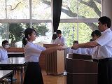 やまなみ祭に向けて、伝統芸能の学習として、お囃子の太鼓と笛の練習が始まりました。講師の方2名が来校され、太鼓と笛に分かれての練習が始まりました。授業の回数は5回です。この5回で11月の発表まで真剣な練習が続きます。