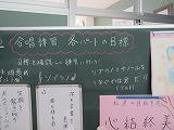 合唱の練習が進んでいます。これまでの練習の結果の確認とこれからの練習の目標について話し合いの場をもちました。練習の確認はビデオ視聴で行いました。その後、パート別にこれからの目標を決め、全体に発表しました。目標は図書室前の掲示板に掲示しています。