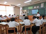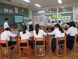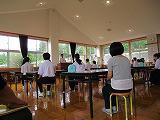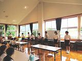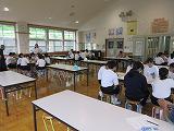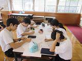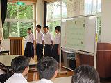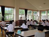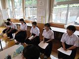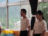 無量荘への4班に分かれての訪問が終わり、今日は集会を開き、ひとりひとりの振り返りとその発表を班ごとに行いました。続いて、班ごとに初回の訪問で班全体で良かった点と次回の訪問に向けての改善点、そして、各班でキラリと光った生徒を班長が発表しました。