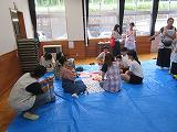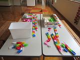 千羽鶴をつなげる作業ですが、毎日少しずつ進んでいます。完成までもう少しです。