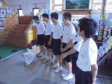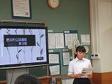 全員で毎日折ってきた千羽鶴が完成し、本校代表で広島平和祈念式典に参加する生徒に手渡されました。その後、生徒会がつくった夏休みの目標の発表がありました。