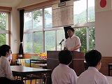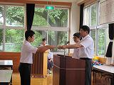 1学期が終了になります。表彰式では、少年の主張発表会で最優秀賞と優秀賞を表彰しました。終業式では、校長より「考える」「感謝する」「努力」についての話、生徒代表3名の1学期の反省と2学期に向けての目標の発表がありました。