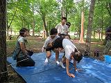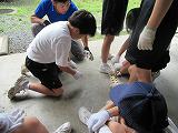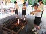 3日目の21日は、火起こし体験体験をしました。どの班も苦労していましたが、ひと班が見事火を起こすに成功しました。