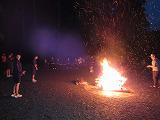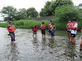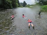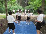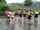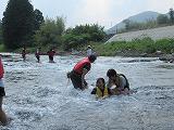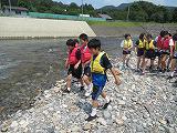 2日目の20日の体験活動は、黒川での川遊びです。ジャケットを付け、川遊びの体験をしました。夜はキャンプファイヤーを小学校と合同で実施しました。1班から3班それぞれが考えた出し物で全員参加し楽しい活動となりました。