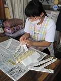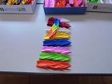 市内中学校の代表生徒が8月5日から7日まで、広島平和祈念式典参加のために派遣されます。本校からも代表生徒1名が参加します。代表生徒が式典の祭に平和の祈りを捧げるために、千羽鶴を全生徒で折ってきました。現在、その鶴をつなげる作業に入りました。