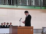 続いて、1学期の始業式を行いました。校長先生からは、「進んで考えること」、「感謝すること」、「全力でチャレンジすること」についてお話しがありました。2名の生徒代表からは、昨年の反省を生かしながらそれぞれに今年1年の目標が発表されました。