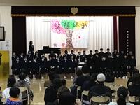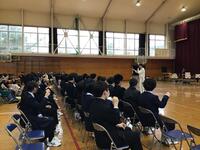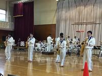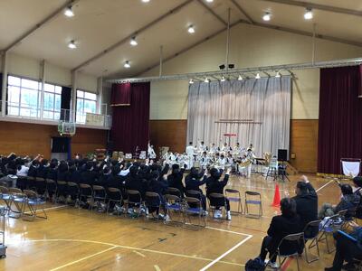 栃木県警察音楽隊の皆さんから元気になる演奏を聴かせていただいたり、カラーガードの美しい演技を見せていただいたりしました。途中で「いかのおすし」のお話や、指揮者体験、のりのりなかけ声練習などもあり、楽しい時間を過ごさせていただきました。また、隊員の皆さんの中に地元板荷小学校・中学校出身の方がいらっしゃり、生徒たちは音楽をより身近に感じたようです。栃木県警察音楽隊の皆さんありがとうございました。