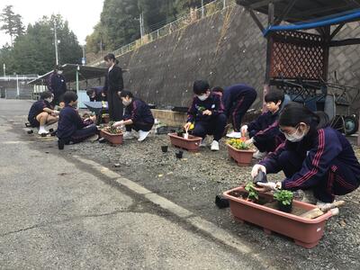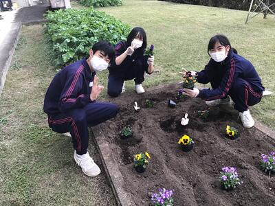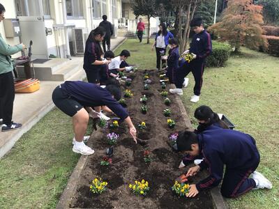 11/13(水)の放課後、花壇やプランターの花の植え替えを行いました。かわいい花が学校に彩りを加えてくれそうです!生徒の皆さんお疲れさまでした。