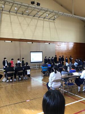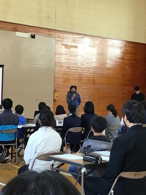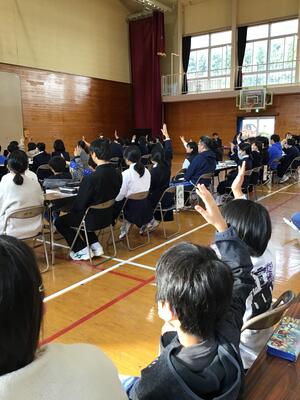 11/25(月)鹿沼市自治会連合会との意見交換会が板荷中で行われました。中学校では西中、粟野中についで3校目の開催だそうです。はじめに自治会とは何かということについてお話をいただき、「鹿沼市の特産物のPR」や「理想の自治会とは?」をテーマに、自治会連合会の方と積極的に意見を交換しました。