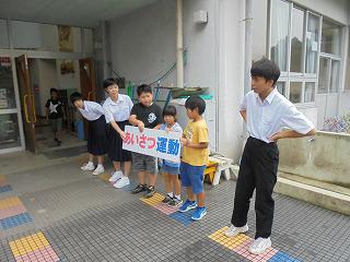数年前まで、「あいさつ運動」週間は、年3回行われていましたが、現在は小中学生が一緒に活動するものは、この1週間のみとなっています。