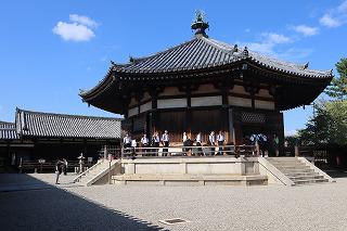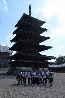 <初日はバスで奈良に向かい、法隆寺と奈良公園(東大寺)を見学しました>