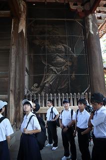 台風21号の影響で、実施が大変危ぶまれましたが、幸い、台風は速度を上げ、出発日の明け方には関東地方も通り過ぎてくれました。東武電車や新幹線の遅れも生じず、定刻に京都駅に到着することができました。京都や奈良では、川や名所の木々がなぎ倒されていたり、様々な物が吹き飛ばされていたりする光景を目の当たりにし、台風の被害の大きさに驚きましたが、見学等の内容・日程は予定どおり進みました。