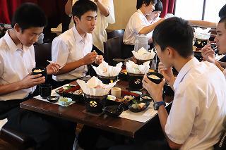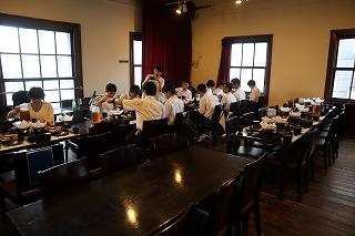 <2日目は、班別自主研修。ペンション到着後はとてもおいしい夕食をいただきました>
