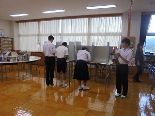 <選挙管理委員会より投票の仕方の説明> <投票所を訪れる生徒達>