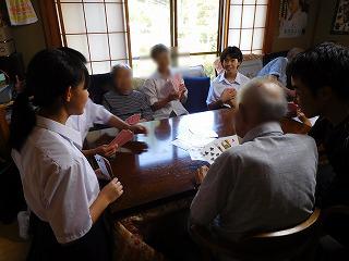 9月19日(水)の昼休みには、第6回無量荘訪問がありました。今回訪問した生徒達は、通所している方々とトランプ(ばば抜き)をして楽しみました。ゲームに参加してくれた方が多くて、カードがなかなかそろわずに大変でしたが、皆さん最後まで楽しんでいただきました。