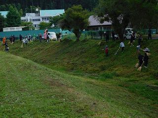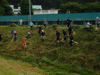 6月23日(土)午前6時30分から、学校の近くにある「せせらぎ公園・せせらぎプールの草刈り」を実施しました。この活動はふるさと板荷地域への貢献活動として、板荷地区PTA連絡協議会と板荷中生徒会の共催で毎年行っているものです。当日は、板荷小中学校の保護者と生徒が、河岸の草取りや草刈り、さらには水路の水草取りに汗を流しました。今年の夏休みも、水遊びをしに多くの家族が訪れてくれることを願っています。