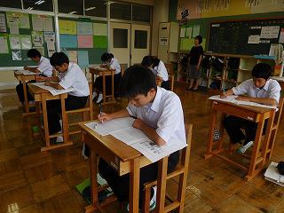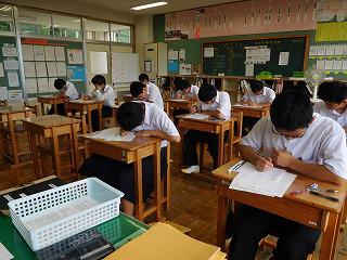本校では1学期の中間テストは実施していないので期末テスト範囲が広くて、テスト勉強が大変だったと思いますが、どの学年の生徒も計画的に家庭学習を進めてきた成果を存分に発揮してくれることを願っています。