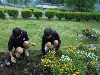 5月17日(木) 生徒会の美化奉仕委員会主催による本年度2回目の「愛校の日活動」があり、今回は窓ふきと花壇の整備を行いました。今年から福祉施設訪問と愛校の日活動を同時間に行う試みをしており、昨年度より更に少ない人数での愛校の日活動ですが、生徒は一生懸命働いていました。毎回その姿に感心しています。