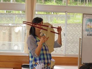 5月31日(木)は今年度最初の「食育の日」でした。板荷小の学校栄養士の先生から、「よく噛んで食べることの大切さ」や「お箸の正しい持ち方」等についてお話をいただきました。
