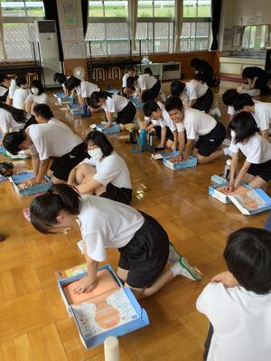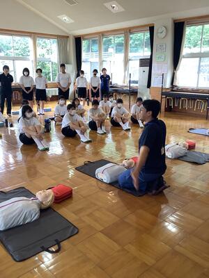 心肺蘇生法やAEDの使い方を座学で学んだ後、心肺蘇生の訓練を行いました。実際に使うことがあっては困ることですが、いざという時の大切な知識や技能を身につけられたと思います。