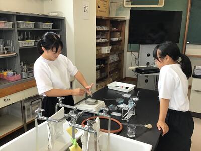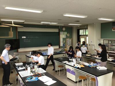 1年生の理科の授業を行いました。生徒が協働し、様々な実験や観察から「白い粉X」がなにか調べる、とても興味深い授業でした。今後も、授業力向上に努め研修を進めていきます。