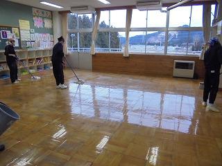 来校された方々からは、「床がピカピカできれいですね。」という言葉をよくいただきます。平成7年に新校舎が完成してから、大切に使われ続けている板荷中校舎。生徒がていねいにワックスがけをしている姿に、『これからもこの学び舎に愛着をもちながら、卒業生のように1,2年生もたくましく育っていってほしい。』という気持ちが、あらためて込み上げてきました。