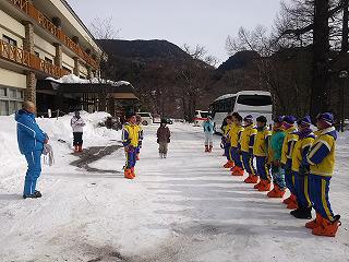 午前8時に学校で出発式を行った後、バスで宿泊先の日光湯元に出発しました。ホテル到着後に入館式を行い、さっそく午前中からスキー教室が始まりました。スキー学習は、冬山の大自然に溶け込み、得手不得手はあっても、主体的に技能習得に取り組んでこそ得られる達成感と喜びを、十分に味わうことのできるすばらしい学習です。