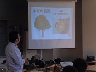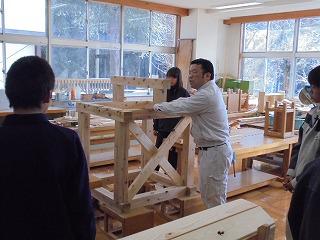 この今市工業高校の出前授業については、HPで何度も御紹介をしているところですが、今年度は、1回目は2年生で「電気の性質」(電気科)、2回目は3年生で「ソーラーカーのしくみ」(機械科)の授業を実施し、そして今回は、建設工学科の先生2名と高校生4名に御来校いただき、「家などをつくるための技を体験しよう」という題材で授業を行いました。生徒達は最初に木材の性質や道具の種類と使い方など基本的なことを学んだ後、先生方や高校生に手助けしてもらいながら、木製プランターづくりをしました。