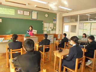 1月23日(火)3時間目に、講師として助産師の大塚和代 様をお迎えし、1年生の学級活動の時間に「性に関する指導(生命尊重をテーマとして)」を行いました。鹿沼市健康課から寺内保健師さんにもお出でいただきました。