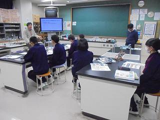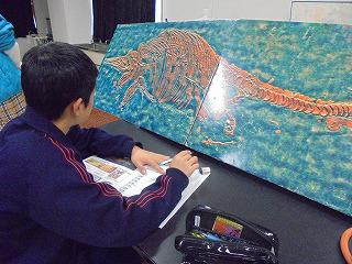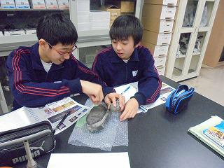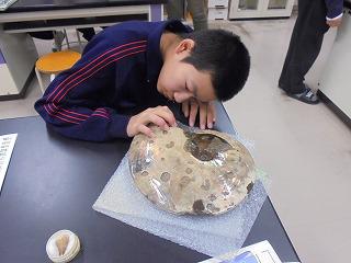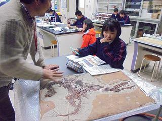 生徒の発表後、柏村先生がそれぞれの化石等について詳しく解説してくれました。生徒は、大きくうなずきながら、その解説に聞き入っていました。授業中の生徒の目はきらきら輝き、真に「知ることは楽しい」「考えることや想像(予測)することは楽しい」という「学びの楽しさ」を十分に味わえた授業でした。
