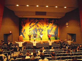 〔学校を出発する前に体育館で練習 ☞ パートごとに最終確認 ☞ 会場の小ホールで直前リハーサル〕