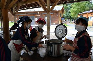 10月28日(土)板荷の鹿沼市自然体験交流センターにおいて、本校が交流活動を行っているデイサービスセンター「無量荘」が主催する「さんまパーティー」が開催されました。このイベントは、民生委員児童委員協議会や食生活改善推進員会等の方々の協力も得て、さんまを焼いたりけんちん汁等をつくってごちそうしたり、様々な余興を行って、通所している方々に楽しんでもらおうというものです。