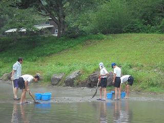 残念ながら今年は川の水の引き込みが悪く、8月3日現在、水量はまだ十分でないようです。また、川のプールですので、せっかく中学生が頑張って清掃しても、大雨が降ってしまうとすぐに水が濁ってしまうということもあります。しかし、小さなお子様が大自然の中で川遊びを満喫するにはとてもよい場所です。夏休み中、たくさんの方に訪れていただき楽しんでもらえたらいいなと思います。