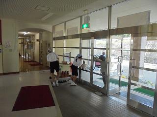 平成26年11月に体育館の耐震化・大規模改修工事が完了してフロアーも新しくなりましたが、今後もきれいなフロアーを維持していくにはそろそろワックスをかける時期ではないかとの話になり、本日の愛校の日活動の中で実施をすることになりました。ワックスがけの作業は2、3年生が担当してくれました。1年生は昇降口・玄関のガラス扉拭きをしてくれました。