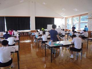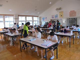 毎週月曜日の放課後は「学力向上テスト」の時間があります。生徒は前週に自ら選んで学習プリントを持ち帰って家庭で自主学習を行い、この時間で再度同じプリントに取り組むことで基礎的・基本的な事項の知識・理解を深めます。正式なテストと異なり、生徒は疑問があったりヒントを得たい時は、テスト中でも教員に質問することができます。