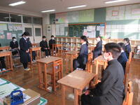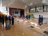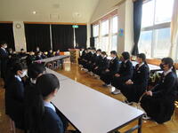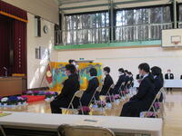 式の予行を行いました。卒業生や在校生代表の動きの確認や生徒の担当する係の確認を主に行いました。