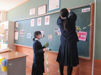 3年生を送る会終了後、式の最終準備として、3年生教室の飾り付けも行いました。