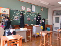 5校時・6校時は1,2年生が「卒業式予行の準備」を行いました。