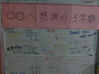 生徒会では、3学期は「感謝」のキーワードで活動しています。廊下の掲示物にも感謝のメッセージが書かれています。