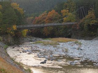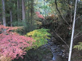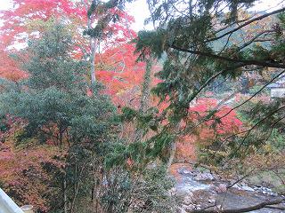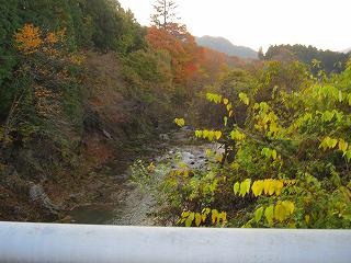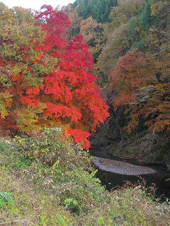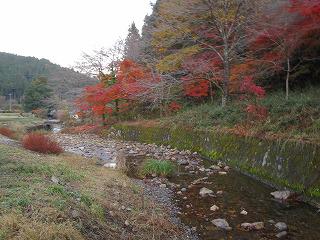 板荷の紅葉と川の風景