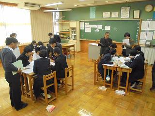 御来校いただいた先生方からは、「授業のめあて等の提示や振り返り活動のあり方」「生徒にとって深い学びになるための指導のあり方」等々のたくさんの御指導・御助言をいただきました。数学科に限らず、全教科において本日御指導いただいたことを十分に生かして、今後も生徒の学力向上に努めていきたいと思います。