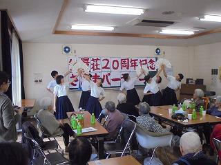 「さんまパーティーっていったい何?」そう思う方もいるでしょう。このパーティーは本校が交流しているデイサービスセンター「無量荘」が主催するイベントです。民生委員児童委員協議会や食生活改善推進員会等の方々の協力も得て、さんまを焼いたりけんちん汁等をつくってごちそうしたり、様々な余興を行って、通所している方々に楽しんでもらおうという内容です。今年は10月29日(土)に板荷コミュニティーセンターで開催されました。