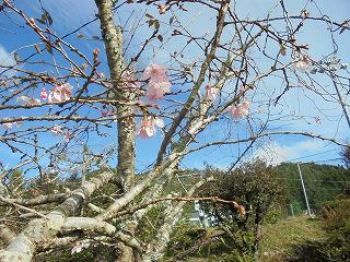 板荷中のビオトープの水辺に桜が咲いています。「十月桜」という桜だそうです。「十月桜」は全体のつぼみの3分の1が10月頃に咲き、残りの3分の2は春に咲くのだそうです。つぼみの約3分の1しか咲かず、しかも断続的に咲くので、春の満開の桜とは異なり派手さはありません。しかし、よく見ると花びらの数が多くて豪華な感じがします。秋なのに桜が見られるなんて・・・・。「桜は春!」 まさしく先入観であり、物事の真理を見極めるって難しいものですね。