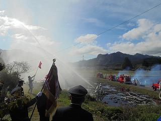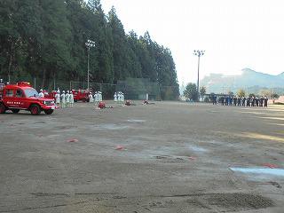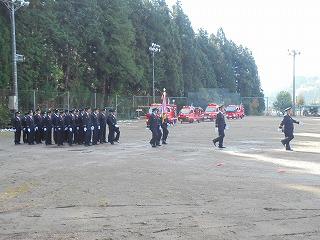 10月29日(土)、生徒がボランティアで「さんまパーティー」に参加している頃、板荷中学校の校庭では、「鹿沼市消防団第8分団通常点検」が実施されました。消防団の皆様には様々な場面で学校教育活動に御協力をいただいていますが、威風堂々とした行進、訓練を積み重ねてきた細かい動き、壮観な放水点検等を目の当たりにして、地域住民の生命と財産を守るため、自ら仕事を持ち多忙ながらも献身的に消防団の活動を行っている団員の皆様に、あらためて頭が下がる思いでした。