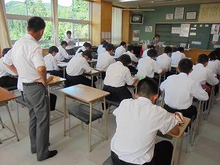 10月17日(月)と18日(火)は2学期の中間テストです。皆、真剣にテストを受けています。残念ながら欠席者や体調不良者が多く、十分なテスト勉強をして臨めている生徒は少ないかもしれません。2週間ほど前から急に熱があがる症状を訴える生徒が増え、学校でも手洗い・うがいの励行、マスク着用等の予防を呼びかけています。御家庭でも、健康に留意した生活が送れるよう、御協力をお願いいたします。