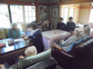 本校では約20年も前からデイサービスセンター「無量荘」の訪問を実施しています。現在は、全校生を5つの班に分け、毎月1回程度、年間合計10回の訪問をしています。毎回、生徒は事前に無量荘に通われている方々に楽しんでもらうための遊びやゲーム等を準備して交流をしてきます。10月12日(水)は今年度6回目の訪問をしてきました。